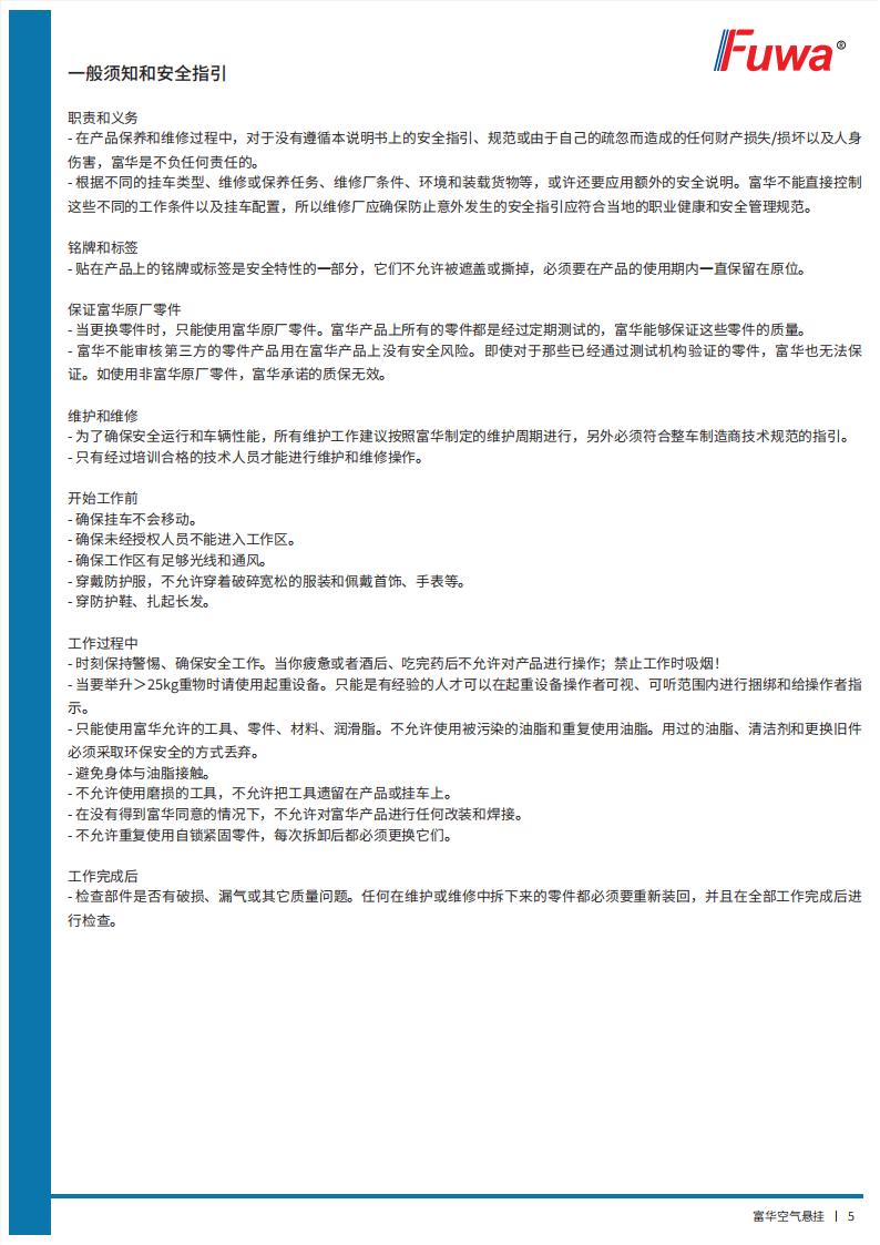 富華空氣懸掛【產(chǎn)品使用說明書】